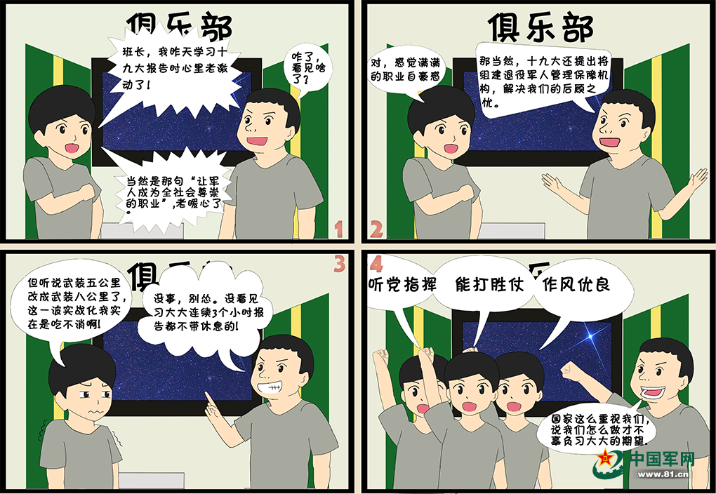 同時,為了消除學習過程中可能出現(xiàn)的枯燥、乏味,惠方林結合學員隊實際生活,繪制了相關漫畫,既生動又形象地展示了十九大精神內(nèi)涵。