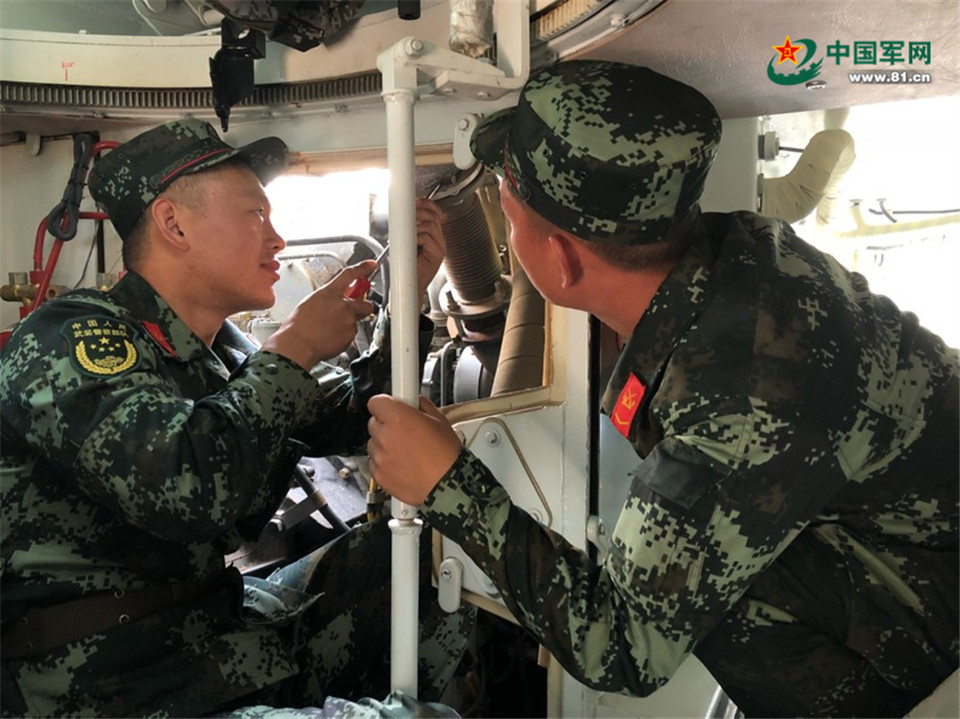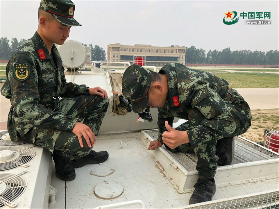 王少峰正在調(diào)校車(chē)載機(jī)槍。