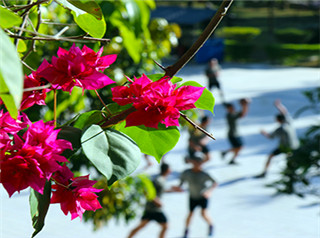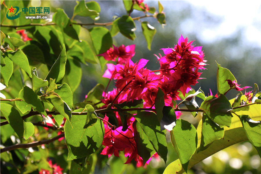 那姹紫嫣紅、絢爛如火的三角梅,宛如熱情好客的人笑迎官兵,讓官兵流連忘返,為官兵燃起衛(wèi)國(guó)戍邊的激情動(dòng)力,仿佛在說(shuō)“加油!我陪你們保家衛(wèi)國(guó)?!?/p>