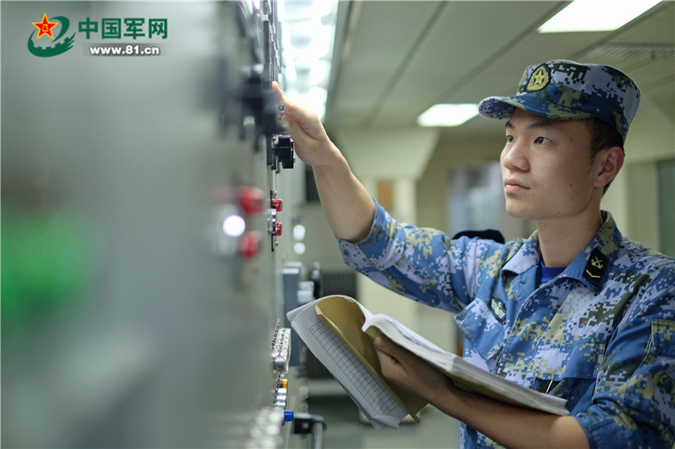 12月1日,中國(guó)海軍和平方舟醫(yī)院船電工兵程酉在檢查裝備運(yùn)轉(zhuǎn)狀況。
