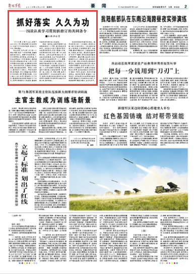 “天下之事,不難于立法,而難于法之必行。”學(xué)習(xí)貫徹新修訂的共同條令,必須下大氣力抓好落實(shí),做到久久為功、善作善成。