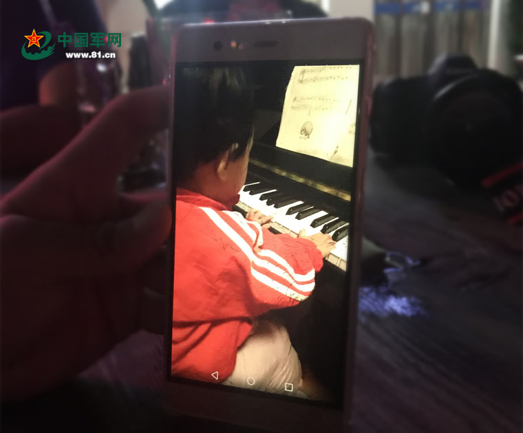 蔡於虎展示手機里女兒彈鋼琴的視頻。楊思晨 攝
