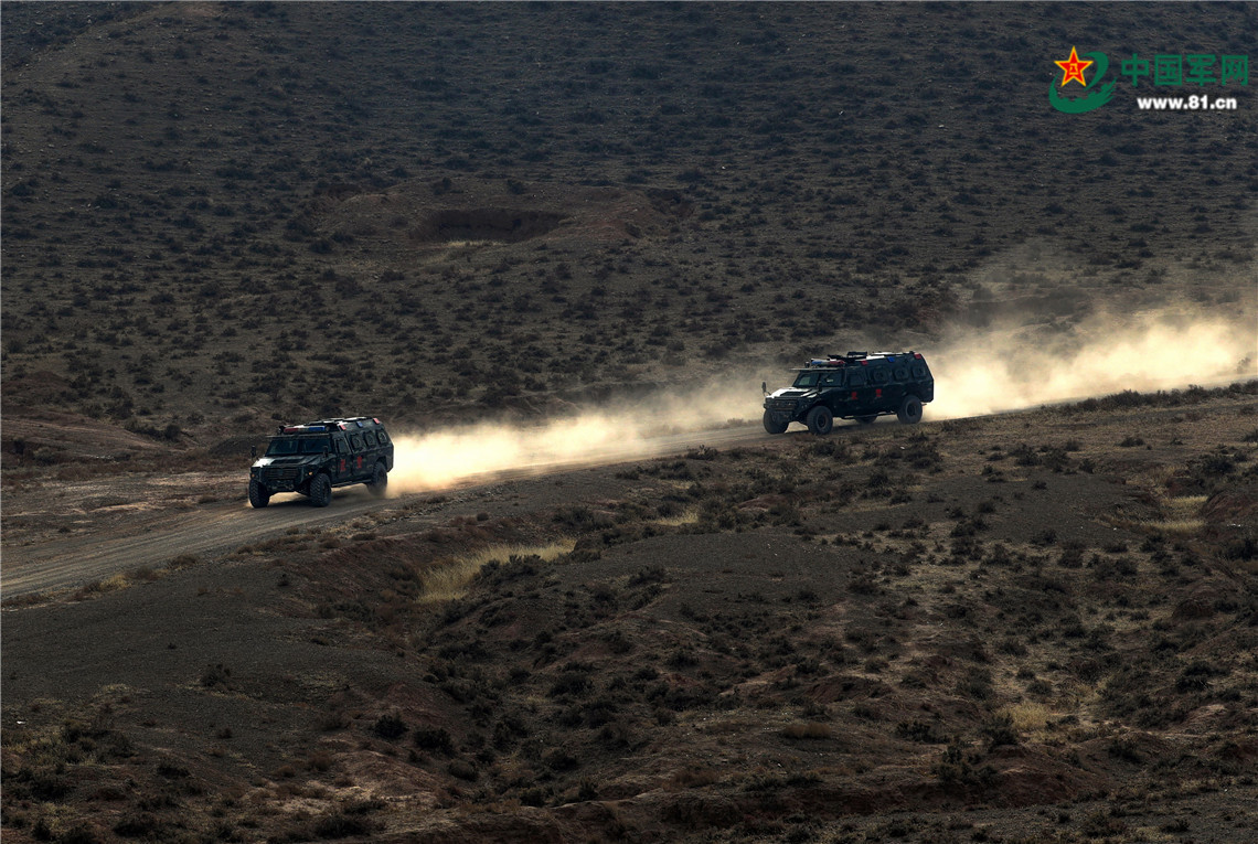 中俄雙方特戰(zhàn)隊員乘坐突擊車快速機(jī)動。