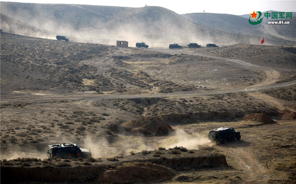 特戰(zhàn)隊員乘坐突擊車快速機動至目標(biāo)地域。