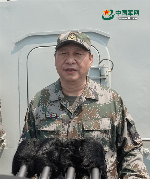 中央軍委在南海海域隆重舉行海上閱兵。中共中央總書記、國家主席、中央軍委主席習(xí)近平檢閱部隊并發(fā)表重要講話。這是習(xí)近平發(fā)表重要講話。記者 馮凱旋 攝