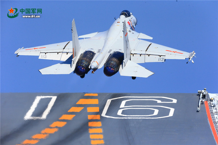 殲-15戰(zhàn)機直插云霄。記者 張雷 攝