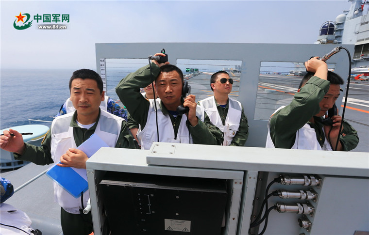 “聽指令”著艦指揮官引導(dǎo)艦載機著艦。記者 張雷 攝