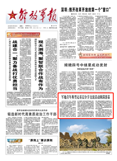 奮斗的青春最美麗,強(qiáng)軍的典型最可敬。由軍委政治工作部和共青團(tuán)中央組織的軍地青年典型走基層分享交流活動(dòng),已圓滿落下帷幕。請(qǐng)關(guān)注今日《解放軍報(bào)》的報(bào)道——