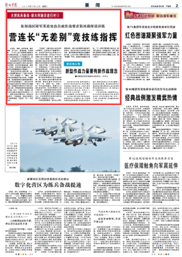 新大綱取消營(yíng)連不同的訓(xùn)練標(biāo)準(zhǔn),統(tǒng)一按照合成作戰(zhàn)要求展開(kāi)指揮訓(xùn)練,更加注重電子對(duì)抗分隊(duì)“信火一體、軟硬一體、空地一體”的合成作戰(zhàn)能力,強(qiáng)調(diào)與火力部隊(duì)密切協(xié)同。東部戰(zhàn)區(qū)陸軍某旅突出合成作戰(zhàn)要求狠抓指揮員訓(xùn)練。請(qǐng)關(guān)注今天出版的《解放軍報(bào)》的報(bào)道——
