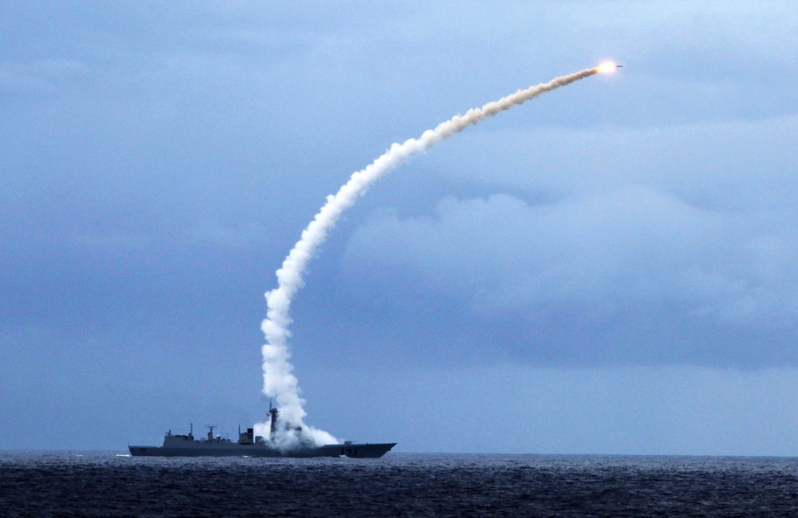 ??谂炘趯?shí)彈演習(xí)中發(fā)射艦空導(dǎo)彈攔截來(lái)襲目標(biāo)(2010年7月26日攝)。新華社發(fā)