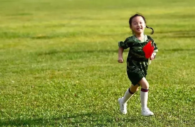 軍娃付子瑄在軍營快樂的奔跑
