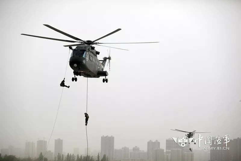 ▲突擊步兵采用繩降、索降方式同時實施機降。