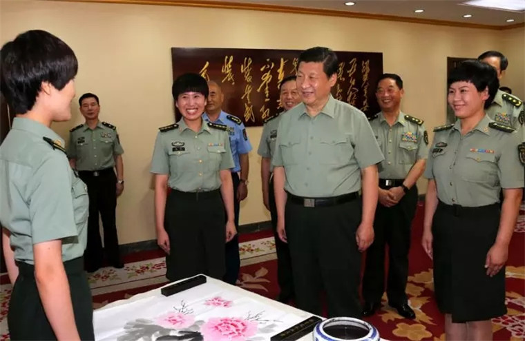 2013年7月29日下午,在原北京軍區(qū)某通信團(tuán)六連,習(xí)主席參觀連隊(duì)榮譽(yù)室,認(rèn)真聽取連隊(duì)情況介紹。他深入士兵宿舍,詳細(xì)了解她們的工作、學(xué)習(xí)和生活情況,饒有興致地觀看官兵自編自演的快板、舞蹈、器樂演奏等文藝小節(jié)目。連隊(duì)才藝室里,官兵們正在進(jìn)行剪紙、書法、繪畫練習(xí)和插花制作,習(xí)主席不時(shí)駐足仔細(xì)觀看,高興地接受了官兵們創(chuàng)作的“中國(guó)夢(mèng)·強(qiáng)軍夢(mèng)·我的夢(mèng)”剪紙作品。