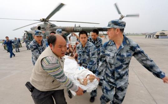 戰(zhàn)士們?cè)谔J山災(zāi)區(qū)轉(zhuǎn)移重傷員(來源:中國軍網(wǎng))