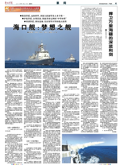 海軍強、海權(quán)興、國運昌,這是歷史的昭示。習(xí)主席深刻指出,建設(shè)強大的現(xiàn)代化海軍是建設(shè)世界一流軍隊的重要標志,是建設(shè)海洋強國的戰(zhàn)略支撐,是實現(xiàn)中華民族偉大復(fù)興中國夢的重要組成部分。??谂灩俦钪?,他們駕馭的軍艦承載著中華民族向海圖強的世代夙愿,擔負著海軍轉(zhuǎn)型發(fā)展開路先鋒的時代重任,要守好祖國的寸土寸海,就必須錘煉提高海上威懾和實戰(zhàn)能力。他們“海上為家、岸上做客”,帶著使命礪劍波峰浪谷、勇闖遠海大洋,把青春熱血獻給強國強軍事業(yè)。正如艦歌所唱的:“我們是海上的蛟龍,人民重托記心中,為了萬家團圓祖國安寧,勇往直前我們決戰(zhàn)決勝……”