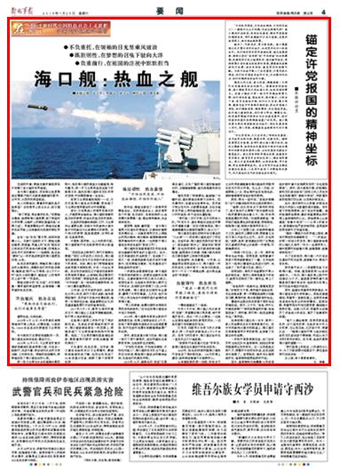 鋼多了,氣要更多,骨頭要更硬。海口艦最強大的力量不在別的地方,而在官兵的內心和熱血中。他們組織官兵參觀南湖紅船,通過追根溯源,領悟從黨的“母親船”到“中華神盾”的血脈賡續(xù);定期赴西沙烈士陵園祭掃,通過緬懷英烈,感悟前輩不屈的意志和獻身的崇高;邀請海戰(zhàn)英雄講戰(zhàn)斗故事、談優(yōu)良傳統(tǒng),激發(fā)官兵的英雄氣概。正因為血液中融入了紅色基因,不管風浪從哪來,他們的價值追求始終不變;無論艦向何處去,他們的精神坐標始終不移。