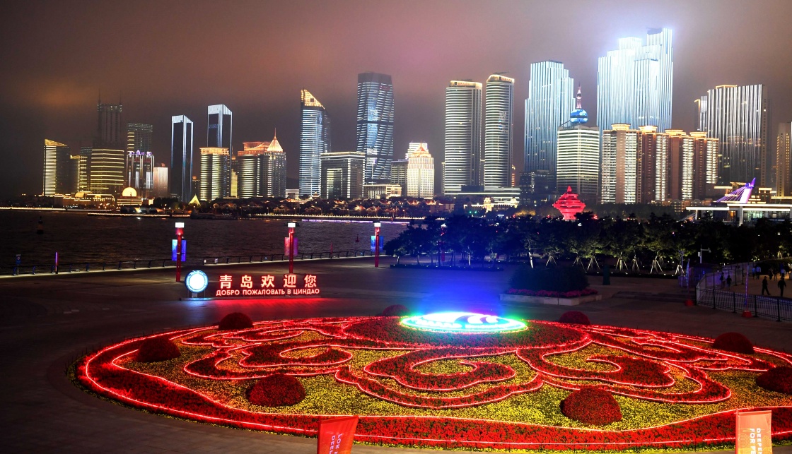 這是在青島奧帆中心附近拍攝的夜景(2018年6月4日攝)。新華社記者劉軍喜 攝