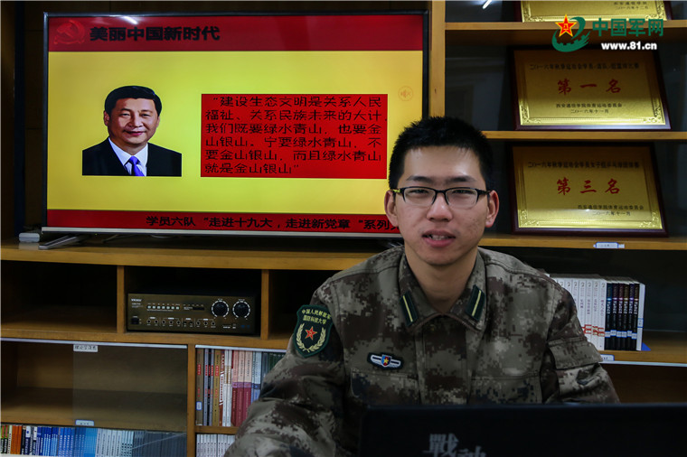 12月4日晚,學(xué)員隊第九黨小組組長黎志偉化身十九大宣講員,給學(xué)員們講解十九大第九部分“加快生態(tài)文明體制改革,建設(shè)美麗中國”。