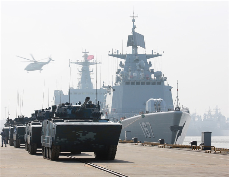 海軍陸戰(zhàn)隊在湛江某軍港組織登陸裝載訓(xùn)練(1月3日攝)。新華社發(fā)(江曉衛(wèi) 攝)
