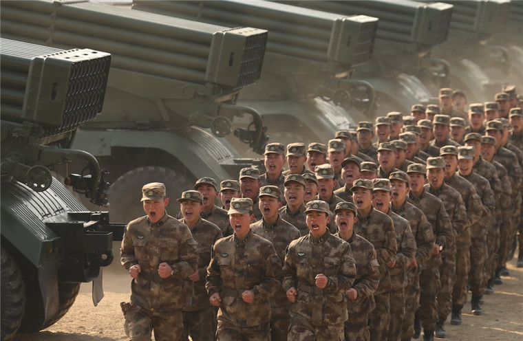 陸軍第80集團(tuán)軍炮兵旅某火箭炮營官兵訓(xùn)練后集結(jié)(1月3日攝)。新華社發(fā)(仇成梁 攝)