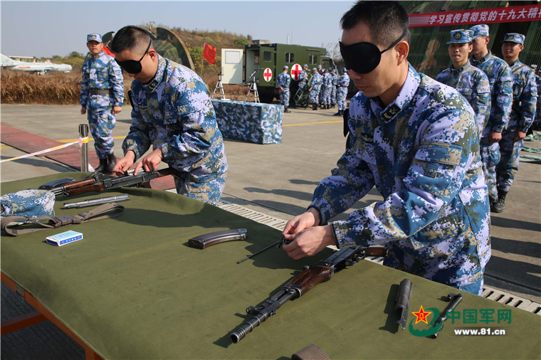 武器裝備是軍人的第二生命,熟練使用手中武器是軍人的必備素養(yǎng)。只見蒙眼拆裝自動步槍現(xiàn)場,隨著步槍零件在參賽者手中飛舞,一支槍的分解、組裝迅速完成,最終軍械股戰(zhàn)士依靠嫻熟的操作,以33秒84的成績奪得了第一。