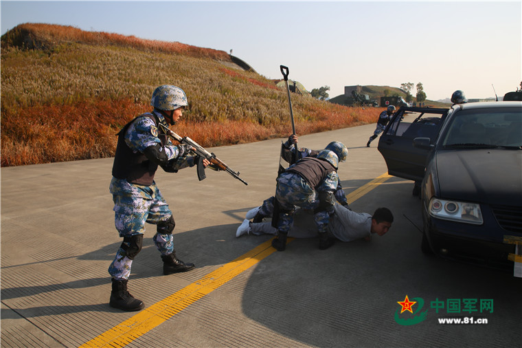 戰(zhàn)場(chǎng),只有想不到,沒(méi)有不可能,只見(jiàn)一波剛平,一波又起,野戰(zhàn)指揮所剛建成使用,一場(chǎng)以不明分子持械闖營(yíng)為背景的反恐防暴演練緊接著展開(kāi)。嗚嗚嗚,隨著一聲聲急促的警報(bào)聲在機(jī)場(chǎng)上空接連作響,反恐防暴分隊(duì)聞令而出,領(lǐng)槍支、拿盾牌、取防暴叉……一系列動(dòng)作一氣呵成。在官兵們的協(xié)同配合下,“敵人”在到達(dá)指揮所前被成功擒獲。