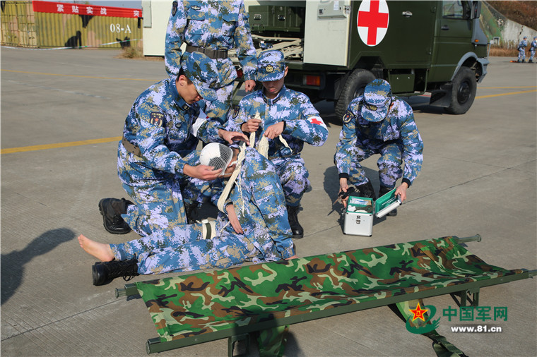 醫(yī)學(xué)上,傷病發(fā)生后的頭四分鐘被稱為急救“黃金時間”,處在生命營救最早現(xiàn)場的,往往是傷員和他身邊的戰(zhàn)友。“警衛(wèi)連一名戰(zhàn)士被敵彈片炸傷,頭部右側(cè)出血,右臂肘部骨折,需緊急救援?!睉?zhàn)傷救護(hù)比武現(xiàn)場,面對各種傷情,來自各單位的救護(hù)員準(zhǔn)確判斷,動作快準(zhǔn)輕細(xì),止血、固定、搬運(yùn)等一系列動作一氣呵成。“緊急處理完畢,迅速送往野戰(zhàn)救護(hù)所?!睉?zhàn)傷救護(hù),比的是醫(yī)護(hù)水平、賽的是速度與協(xié)作。