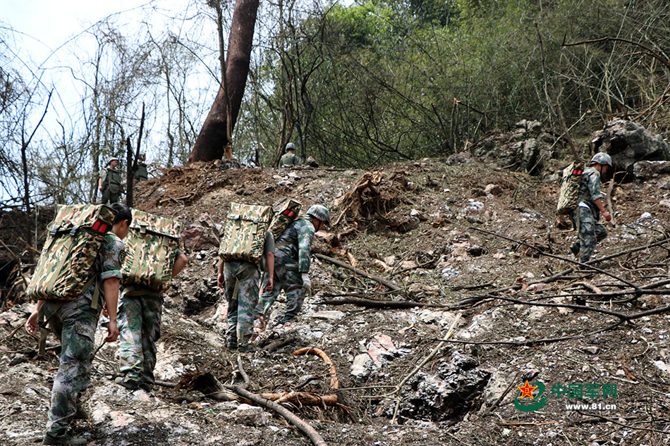 炸藥、防護(hù)服、防雷靴、探雷器、掃雷耙、水、食物等,需要排雷隊員背著進(jìn)山,每個隊員需要背負(fù)50公斤左右的物資,徒步走1個小時左右的山路。