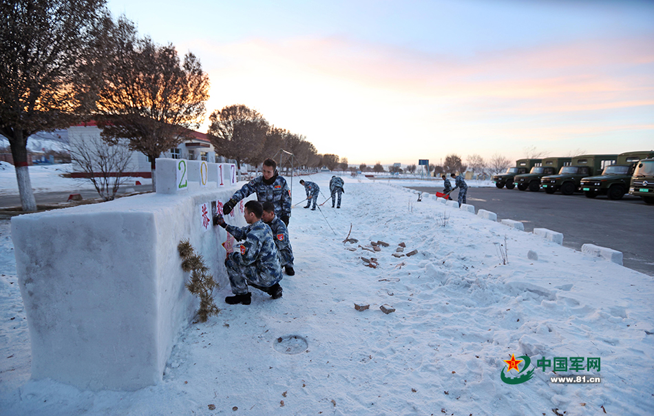 ?汽車連的“冰雪長城”,成為營區(qū)內(nèi)的一道特色景觀。