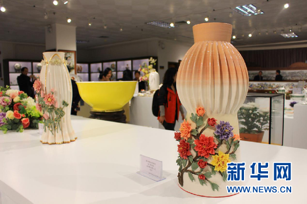 中國(guó)瓷都陳列館展出使用“3D打印技術(shù)”制作的陶瓷花瓶。新華網(wǎng)發(fā)(官偉 攝)