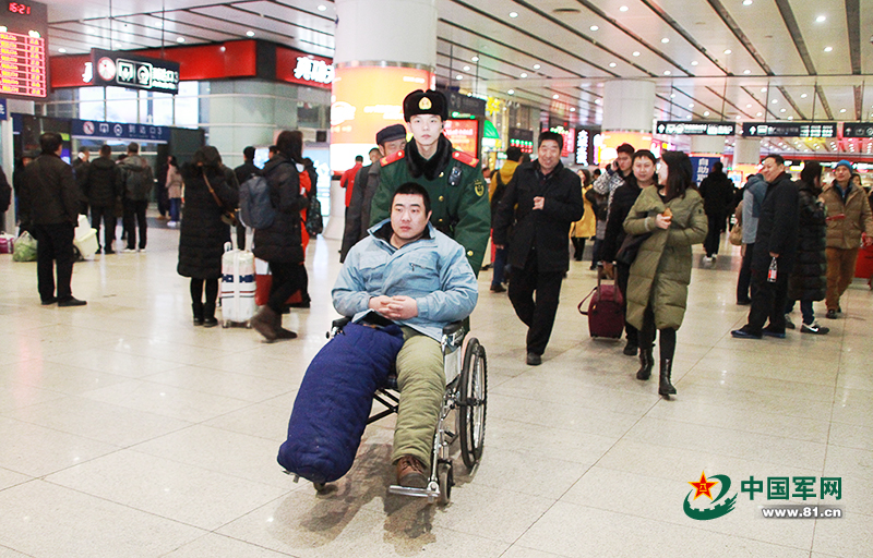 武警執(zhí)勤哨兵為一位行動(dòng)不便的群眾提供服務(wù)幫助。 姜瀚攝