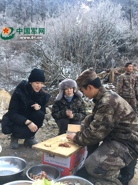 六連戰(zhàn)士為記者準(zhǔn)備了豐盛的野餐。李國濤 攝