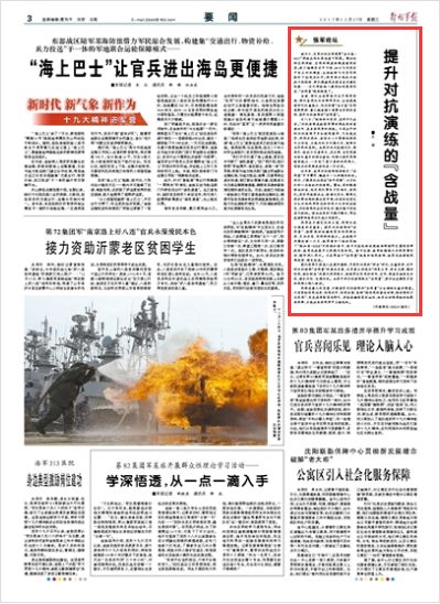 當(dāng)前,部隊(duì)全面貫徹習(xí)近平強(qiáng)軍思想,強(qiáng)化備戰(zhàn)打仗的鮮明導(dǎo)向,全面提高新時(shí)代打贏能力,就應(yīng)該像“金頭盔”空戰(zhàn)競(jìng)賽那樣,最大程度縮小競(jìng)賽與實(shí)戰(zhàn)的差距,提升對(duì)抗演練的“含戰(zhàn)量”。請(qǐng)關(guān)注今日《解放軍報(bào)》的報(bào)道——