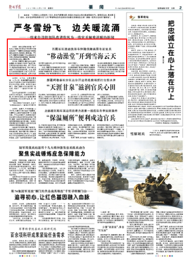 為此,西藏軍區(qū)保障部傾聽官兵呼聲,轉(zhuǎn)變作風(fēng)聚力解難,調(diào)研后推出“移動澡堂”保障新舉措,在雪海云天打造流動保障線,實現(xiàn)“暖流跟著鐵流走,動中洗浴不用愁”。