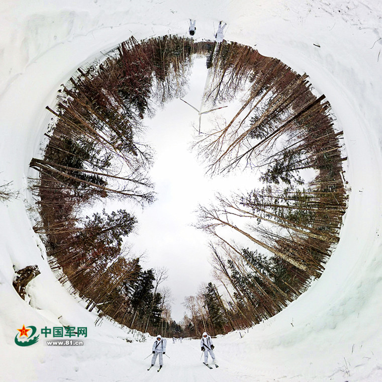 圖為VR全景記錄特戰(zhàn)隊員滑雪行軍。