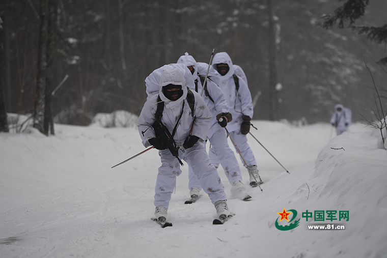 密林雪地行軍,白雪至腰,此時(shí)這支12人特戰(zhàn)小分隊(duì)正在雪地中行走。打頭的戰(zhàn)士一腳踏進(jìn)雪堆,靠著雙腿為身后的戰(zhàn)友趟出一條后路,短短不到三十米,在—31℃的氣溫下滿頭大汗,臉上掛滿的汗水迅速凝結(jié)成冰,轉(zhuǎn)瞬融化,如此往復(fù)臉上結(jié)滿冰花。第一個(gè)人行走一段距離,換第二個(gè)人頂上,輪番開路,抵達(dá)目的地之后迅速到達(dá)自己的戰(zhàn)位。