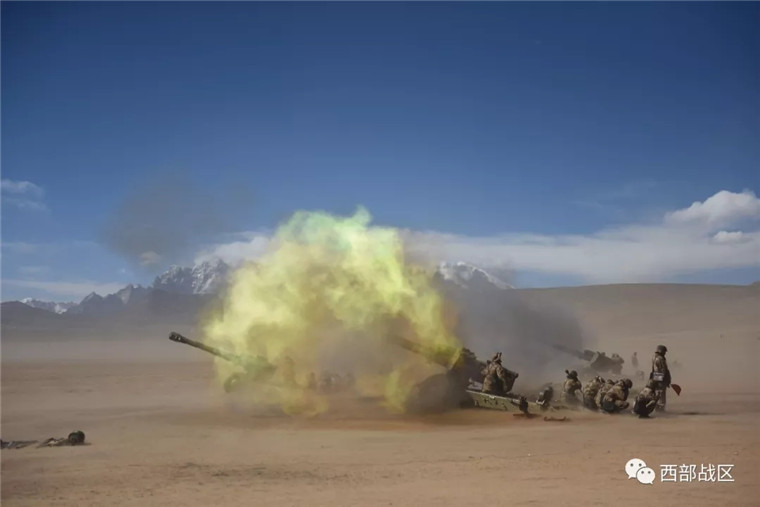 間瞄射擊,火炮齊射瞬間。潘濤 攝