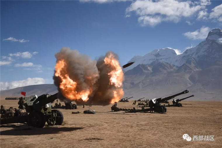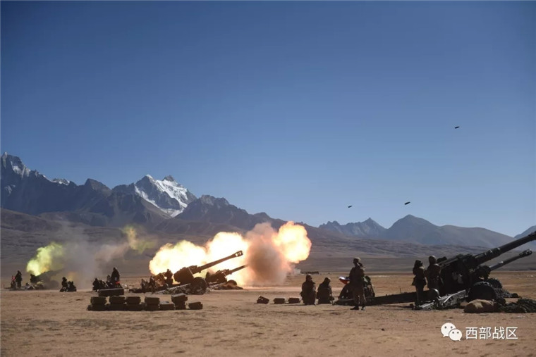 間瞄射擊,火炮齊射瞬間。陳奇 攝