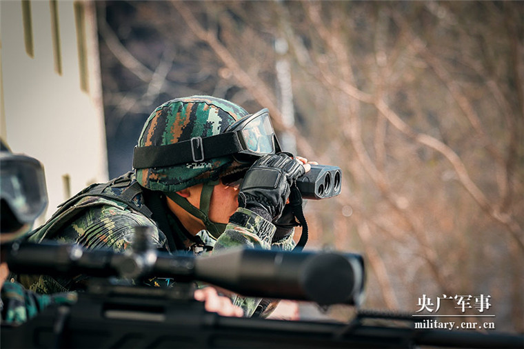 特戰(zhàn)隊(duì)員通過(guò)望遠(yuǎn)鏡觀察情況。曹正玉攝