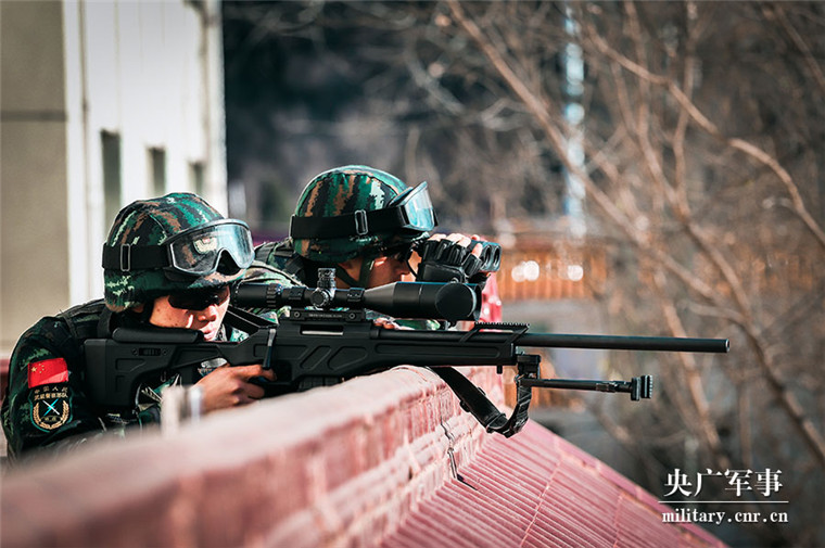 狙擊手在制高點瞄準“目標”。曹正玉攝
