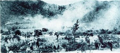 18日晨,縣里地區(qū)之南朝鮮第3、第9師開始分經(jīng)龍浦、芳東里、鎮(zhèn)東里向南及東南方向突圍。志愿軍第20軍和人民軍第5軍團(tuán)部隊(duì),根據(jù)預(yù)定部署,立即分從東西兩面出擊,對逃敵展開進(jìn)攻。