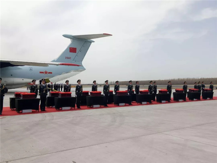 今天上午,第五批在韓志愿軍烈士遺骸迎接儀式在沈陽舉行。11時18分許,運載20具烈士遺骸棺槨的中國空軍伊爾-76運輸機,在兩架戰(zhàn)機的護送下抵達桃仙機場。舉行簡短的迎接儀式后,將烈士遺骸棺槨護送至沈陽抗美援朝烈士陵園。29日10時,安葬儀式將在該陵園志愿軍烈士紀念廣場舉行。