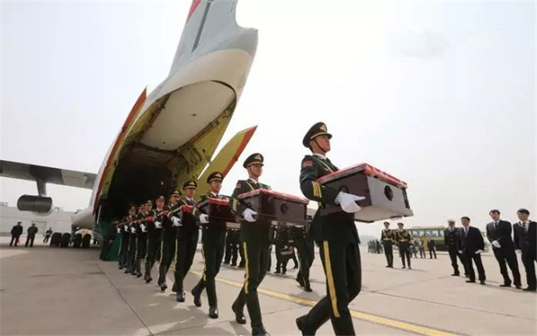 2014年3月28日,首批437具中國人民志愿軍遺骸從韓國仁川機場踏上回家之路,運送烈士遺骸的專機進入中國領(lǐng)空后,空軍派出兩架殲-11B戰(zhàn)機迎接護航。上午11時30分,中國政府在沈陽桃仙機場舉行了隆重的迎接儀式,半個世紀埋骨他鄉(xiāng)的英魂終歸故鄉(xiāng)。