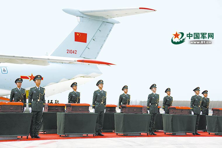 根據(jù)中韓雙方達(dá)成的共識,當(dāng)?shù)貢r間28日10時,中韓雙方在韓國仁川國際機場莊嚴(yán)舉行第五批在韓中國人民志愿軍烈士遺骸交接儀式。當(dāng)天上午,第五批在韓中國人民志愿軍烈士遺骸由我空軍專機護(hù)送從韓國接回遼寧沈陽,20位志愿軍烈士英靈回到祖國和人民懷抱。詳情請關(guān)注今天出版的《解放軍報》帶來的報道——