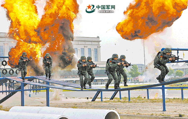 “獵鷹突擊隊”開展通過火障訓練。 謝珍孝攝