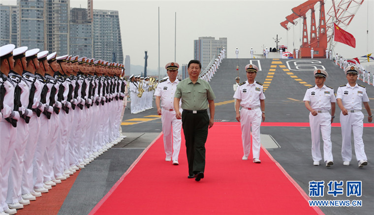 2013年8月28日,習主席登上停泊在大連港的遼寧艦。