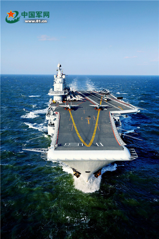 海軍遼寧艦劈波斬浪開展訓練。