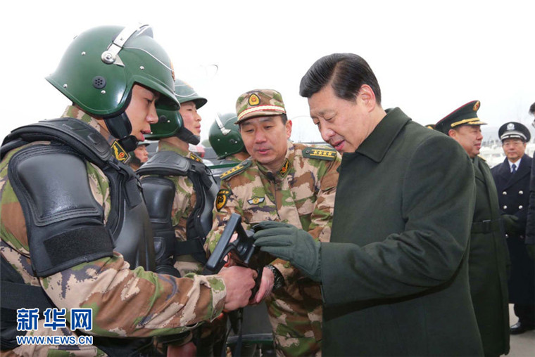 2013年1月29日習(xí)主席視察武警部隊北京市總隊,觀摩緊急出動演練,察看部隊裝備,詳細考察訓(xùn)練和生活情況。