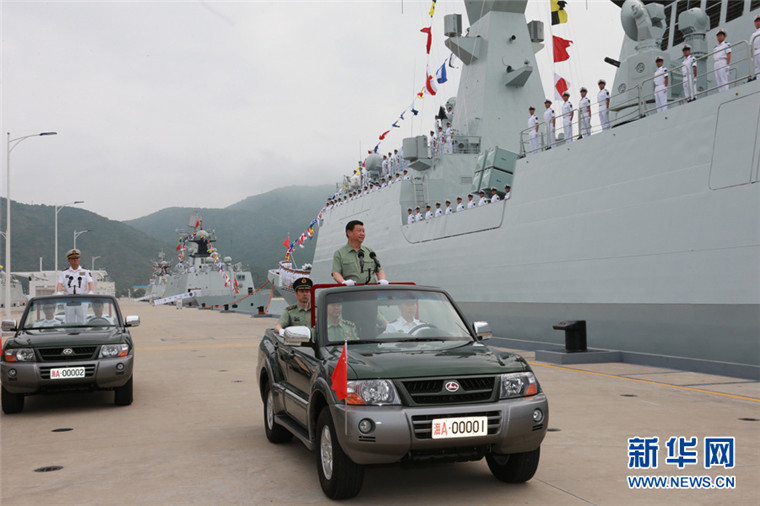 2013年4月9日,習(xí)主席檢閱水兵儀仗隊后,登上敞篷車。