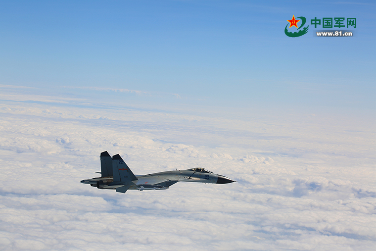 2017年12月初,南海艦隊航空兵組織轟炸機(jī)、殲擊機(jī)、預(yù)警機(jī)等多型數(shù)十架戰(zhàn)機(jī)分批從異地機(jī)場起飛,赴西太平洋某海域與航經(jīng)該海域的海軍第28批護(hù)航艦艇編隊進(jìn)行對抗訓(xùn)練。圖為海軍殲擊機(jī)空中巡航。吳凡燁 攝